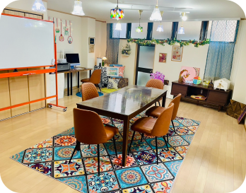 生徒さんやご紹介でいらっしゃる方から、『アットホームでとても居心地がいい』とお褒めの言葉をたくさんいただいています。緊張や不安を感じる方も、まるで家族や友人と過ごしているような感覚で楽しく英語を学べる場所です。まずはお気軽にお越しくださいね!